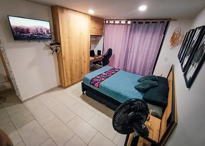 The apartment is 3.4 km from the Explora Park and the outdoor Botero Plaza is a mere 1.9 km away. While exploring Medellin, guests can conveniently reach the solemn Memory House Museum, which is approximately 400 metres away. Acogedor Loft Frente Al Tranvia Apartment is located 25 minutes' stroll from Paisa's Little Town.